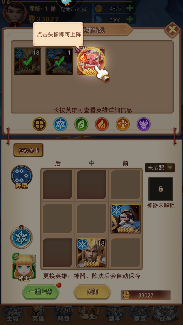 10.在下次作战开始前点击布阵,上阵我们获得的英雄,继续进行冒险旅程。