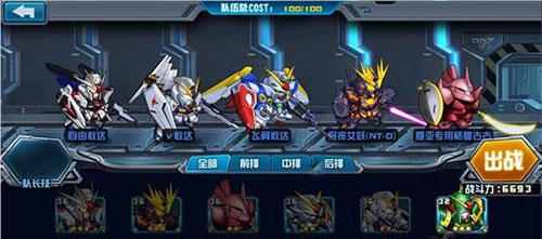 游戏中的每一台机体都有固定的COST值,玩家每次出战的机动战士部队COST总值为100点。