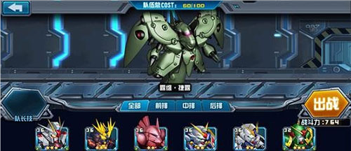 当上阵5台20cost值的机体时,阵容灵活多变,可根据敌方的阵容做出相应的改变,更能做到克敌制胜。