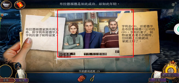 2.公文包里可以得到案件卷宗和尖头钳,记得先拿上。之后直接把案件卷宗交给边上的侦探,进入拼图游戏。拼图游戏点击单个碎片可以旋转,最后的结果如下图的两张完成图。