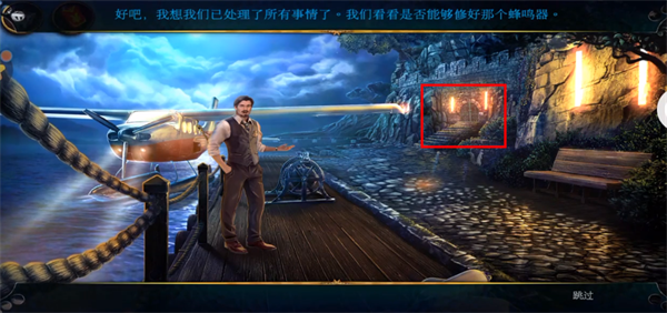 1.首先拿到下图红框里的浮标和绳子,然后对绿框的飞机使用绳子,点击飞机门,放大,进入得到公文包。