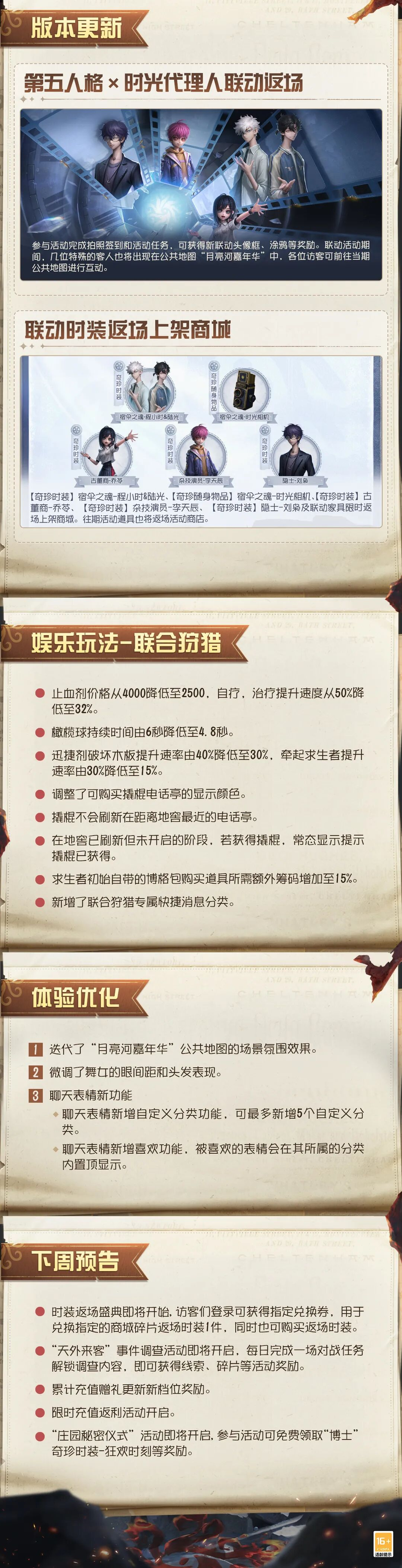 为保证庄园的稳定运行,【第五人格】将于周四上午07:30进行不停服维护。