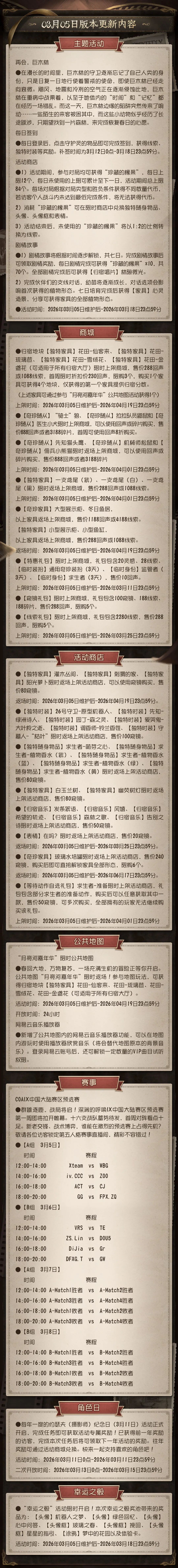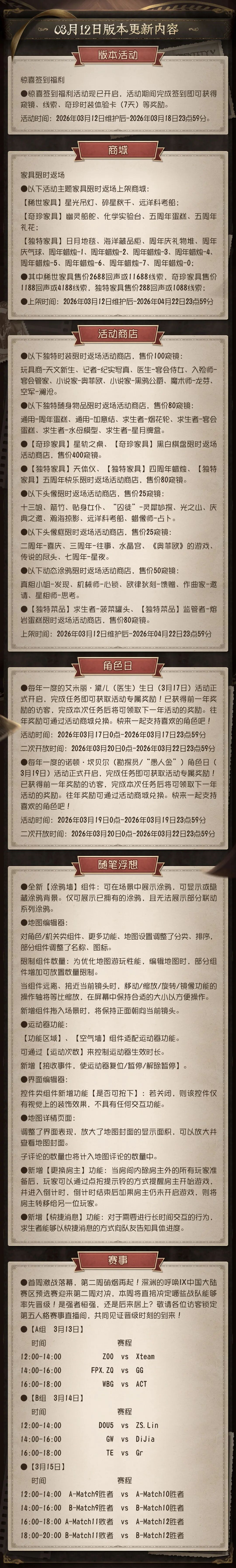 《第五人格》2026年3月12日维护公告