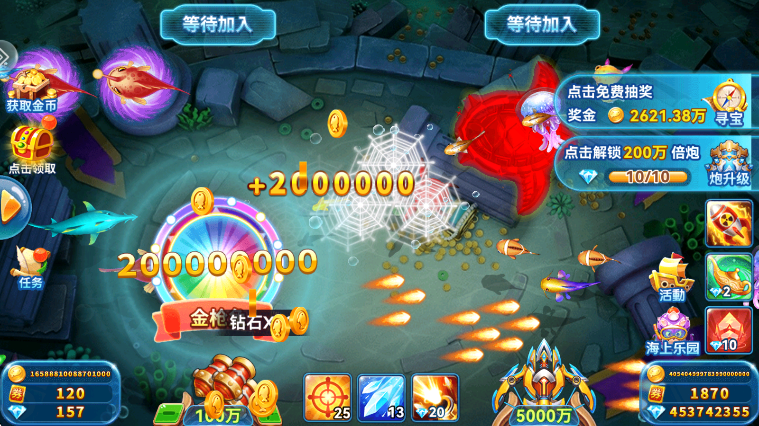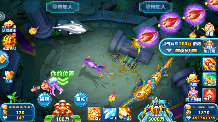游戏提供了多种炫酷炮台皮肤和强力技能(如激光炮、冰封龙卷),让玩家体验全屏爆金、秒杀鱼群的爽快感。核心玩法围绕着多人同屏实时竞技,挑战烈焰龙王、雷霆巨齿鲨等深海Boss。它以超高爆率、多重免费福利(每日百万金币)和激烈的竞技排名系统为特色,让玩家轻松打鱼,争夺「捕鱼之神」的最高称号。