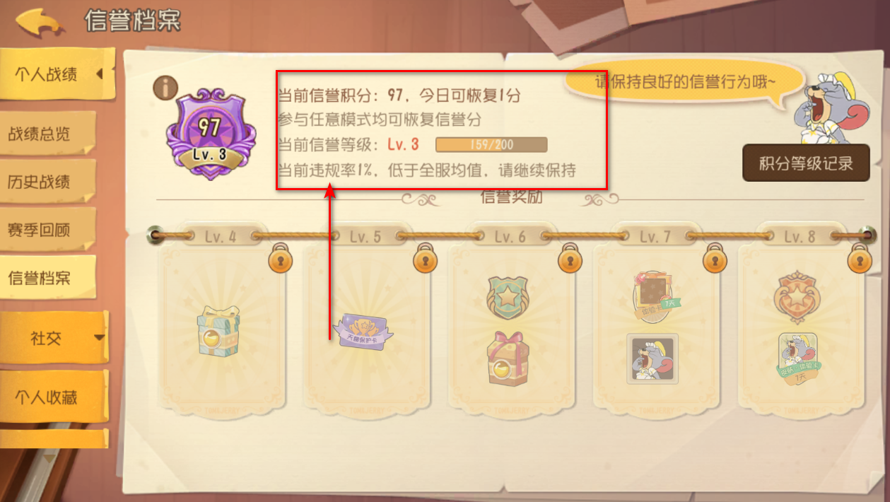 *低信誉匹配时,任何角色都不能获得专精度提升,且战斗结果不计入胜率计算。