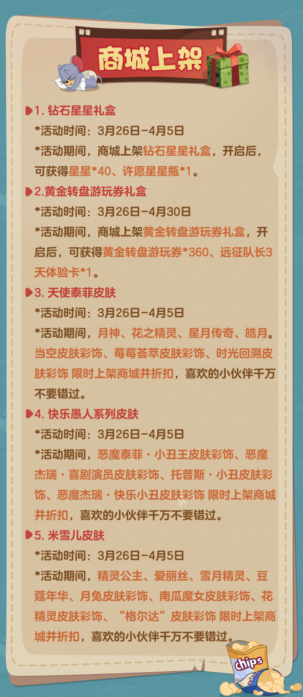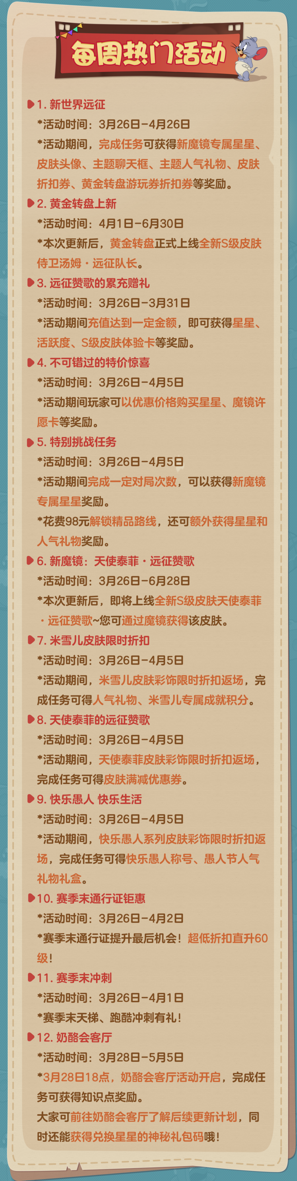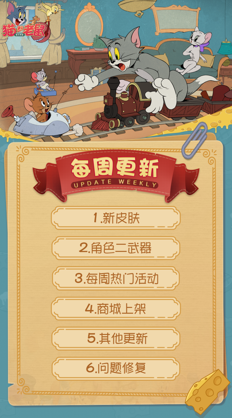 以上就是本周(3月26日)更新维护的全部内容啦!感谢小伙伴们对于《猫和老鼠》手游的支持和喜爱,愿欢乐永远陪伴大家左右!