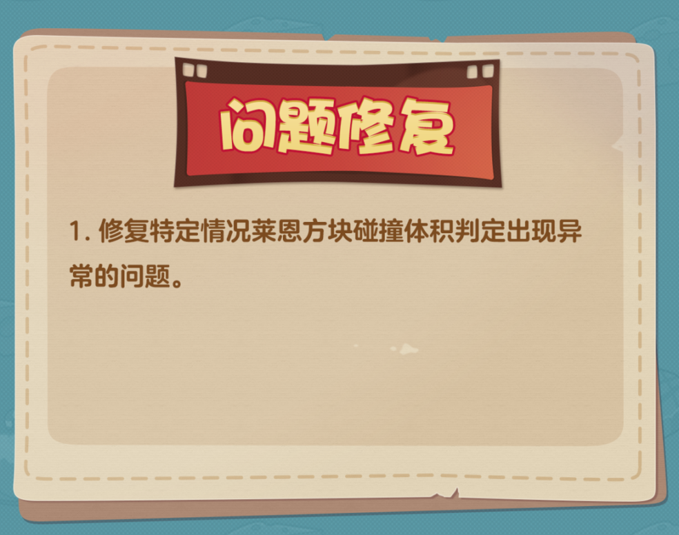 1.修复特定情况莱恩方块碰撞体积判定出现异常的问题。