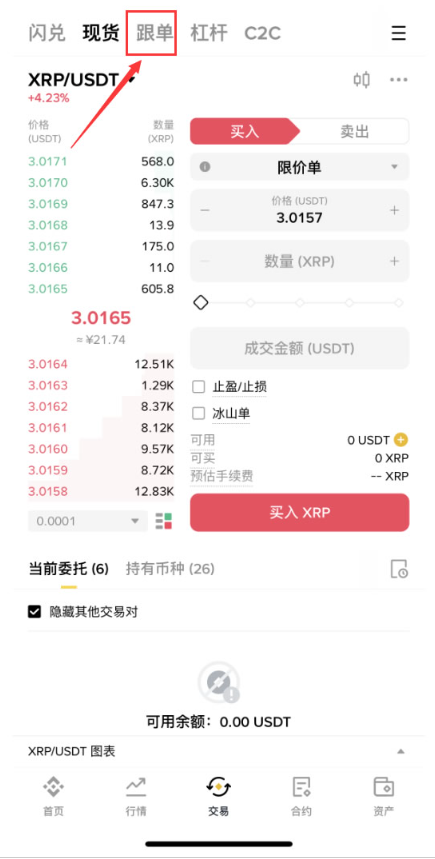 2.点击上方的跟单。