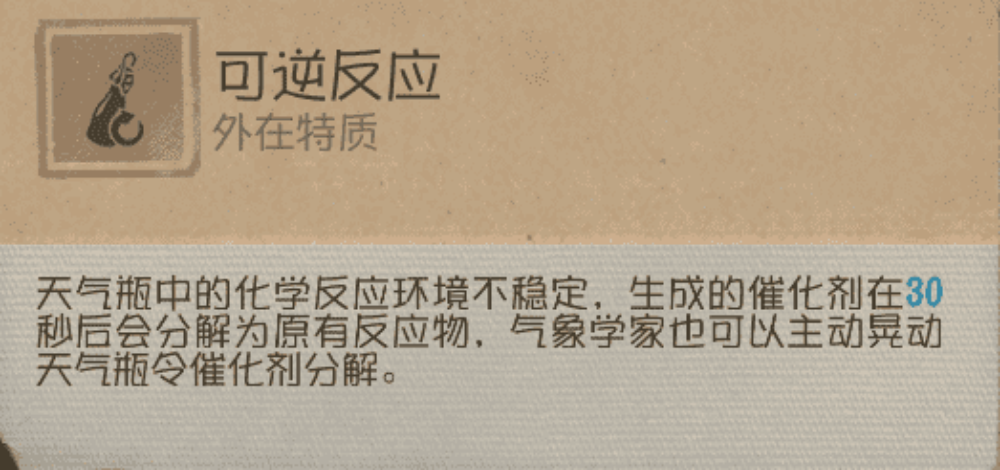 根据实际情况灵活判断【可逆反应】的使用时机,例如在需要推开监管者时,可使用【可逆反应】将已经绘制好的层云或暖雨取消后绘制强风,更加灵活地运用天气瓶进行牵制。