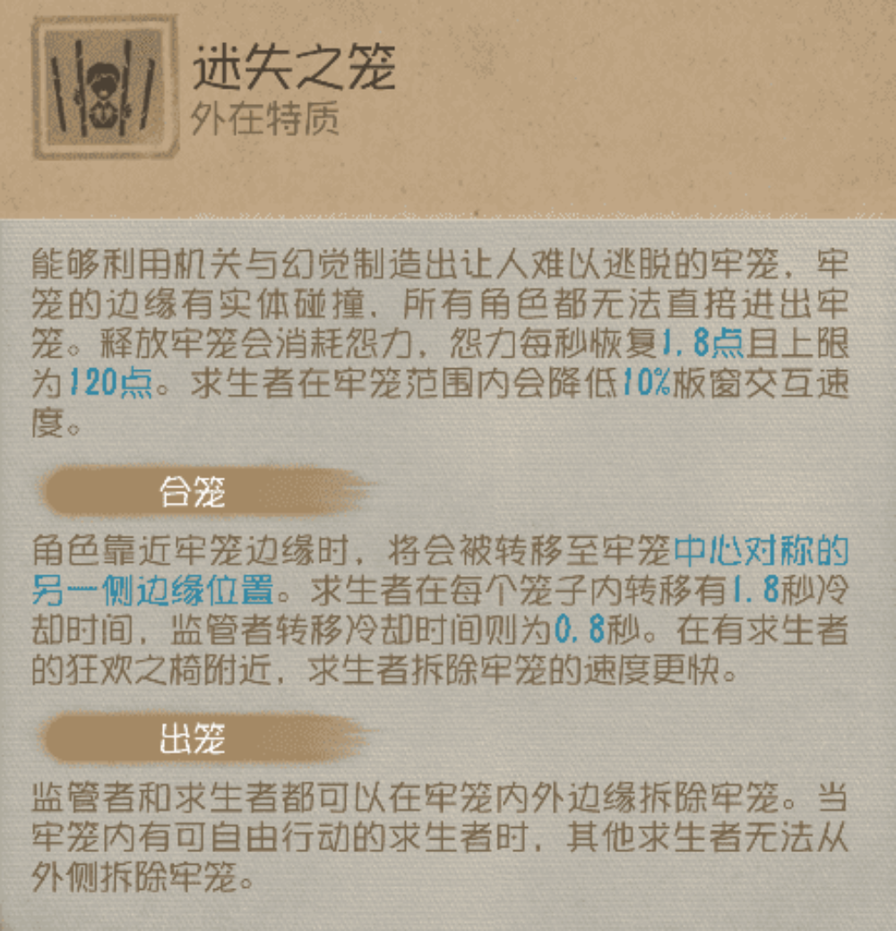 ②必须在笼内命中求生者才能使牢笼提前消失,若在笼内命中遁地的守墓人、先知的役鸟、记者的幻影等,牢笼不会提前消失。