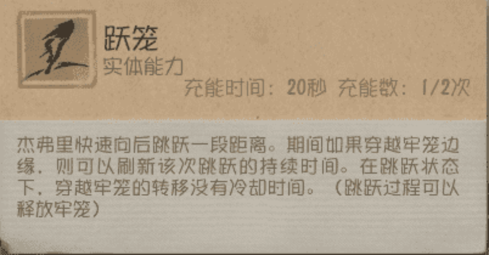 ③在跳跃过程中可结合“跛脚羊”“围笼”的特质,利用“双笼”快速缩短身距以达到拿刀目的;