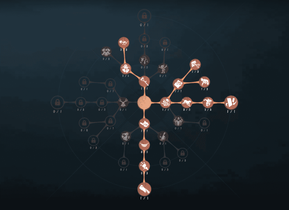 这套可作为通用天赋,“挽留”和“底牌”极大程度的激发了“跛脚羊”的上限以及可玩性。“狂暴”和“通缉”非常适配“跛脚羊”强大的拦截能力,一旦拦截到救人位可以打出救不下甚至使其无法贴近狂欢之椅的效果。带“崩坏”可以拖慢求生者补状态的时间,进一步扩大“跛脚羊”的后期控场。同时,守椅时可在狂欢之椅前放置牢笼使得救人位无法贴近狂欢之椅以达卡过半或者救不下的目的。