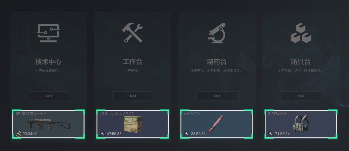 在之前的特勤处攻略中,我们介绍了技术中心、工作台、制药台,和防具台这四个设施对应的可生产物资类型,干员们可以根据市场需求的风向,选择合适的设施进行升级。