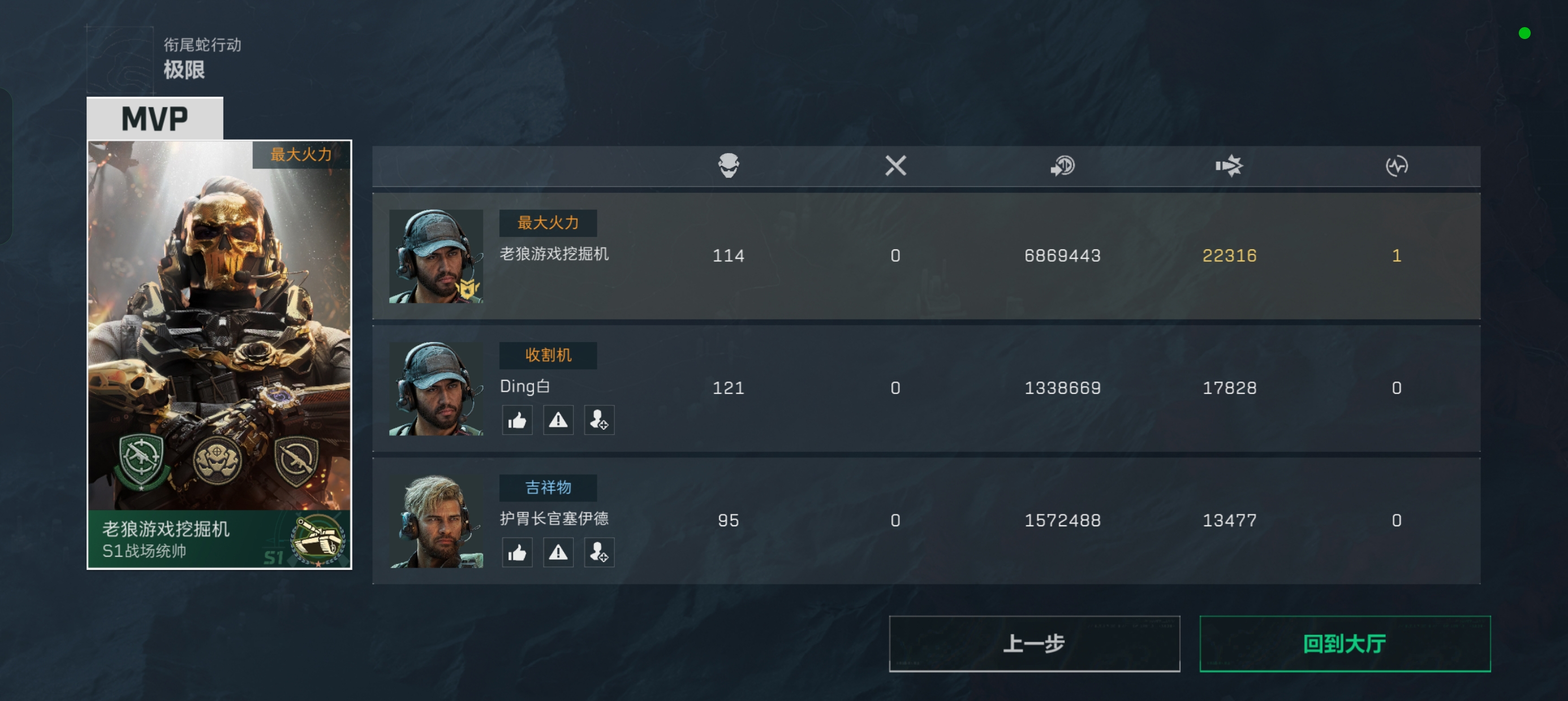 除此之外,好的护甲是你最基础的保障,且不占用300万的限制,紫头可以被一枪秒,因此有能力直接上6头六甲,首次通关最低需要5套进场!