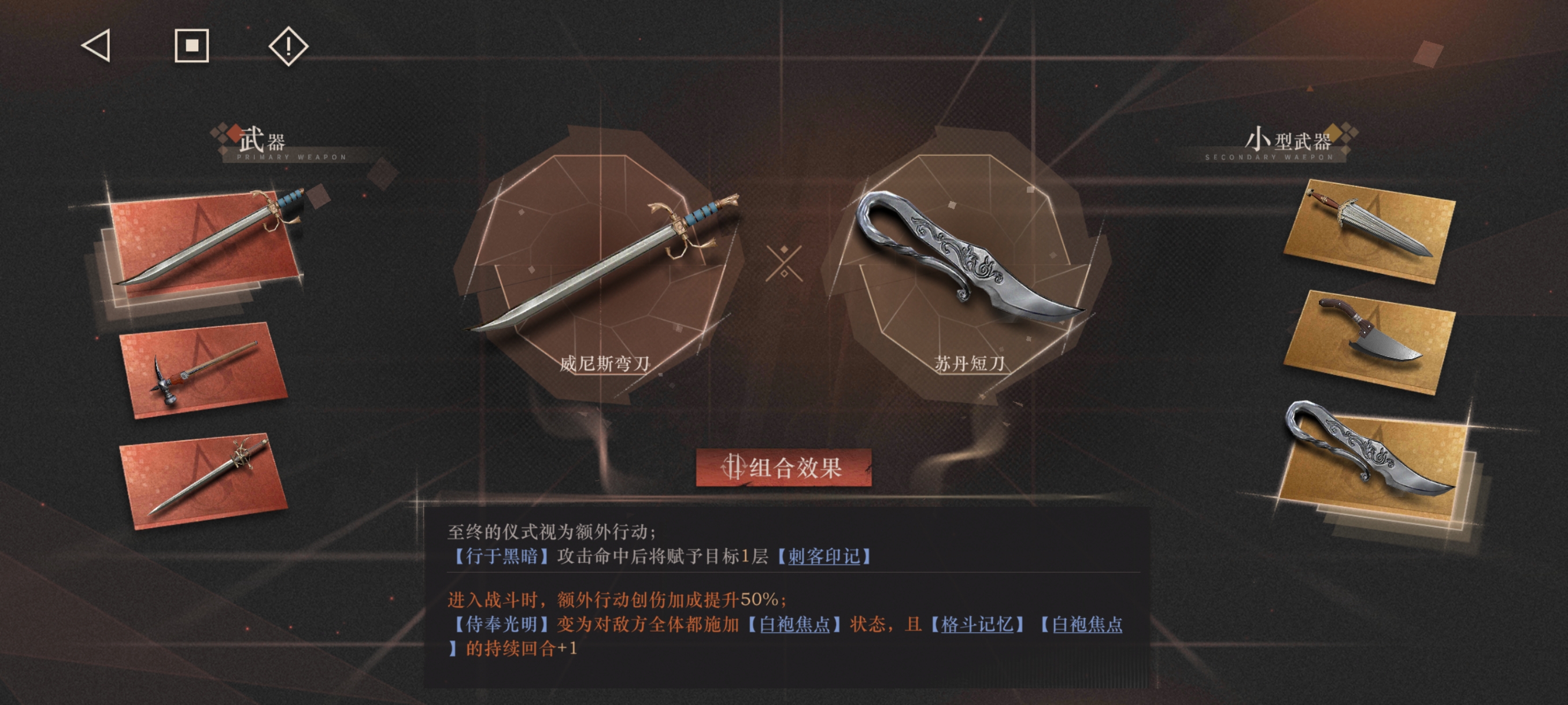 副武器:苏丹短刀(延长反击时间至2回合,同步率获取更稳定)。