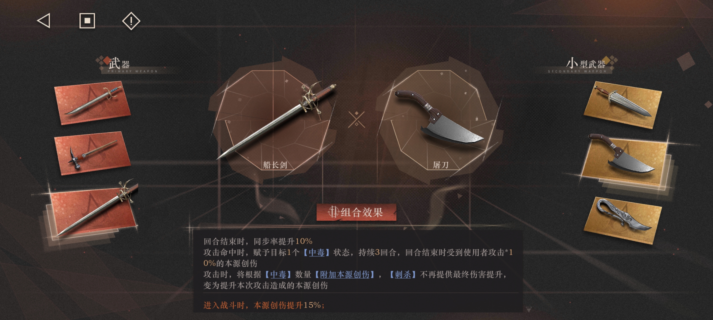 ③ 中毒流(船长剑+苏丹短刀):附加中毒,适配毒队体系。