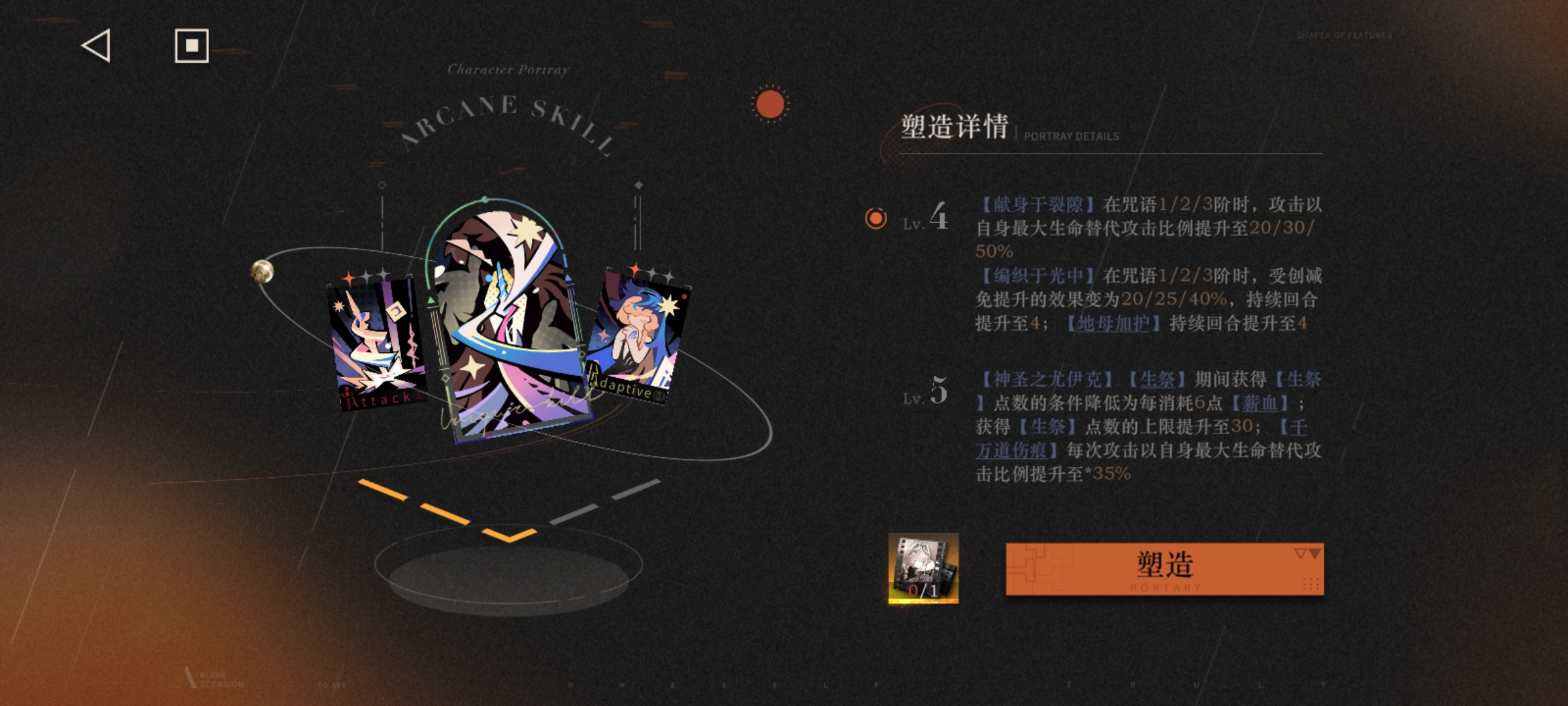 诺谛卡的主要输出方式就是积攒薪血,信仰满之后打出大招,也就是至终仪式。同时高效地攒薪血还能高频地触发地母之口。