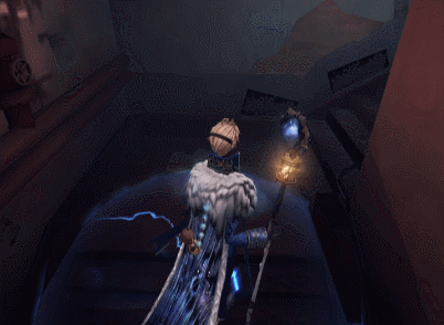 ③ 隐士的地下室守椅能力主要依靠眩晕求生者后打出落地刀来获得双倒或者救不下的效果。通常会将视角调低后使用【奇迹】,可以让电流磁场出现在地下室楼梯拐角处,由于电流磁场会存留一段时间,因此无论是佣兵还是前锋这类强位移能力的求生者,都有大部分求生者都会被晕住,我们便可以顺利进行多次博弈。