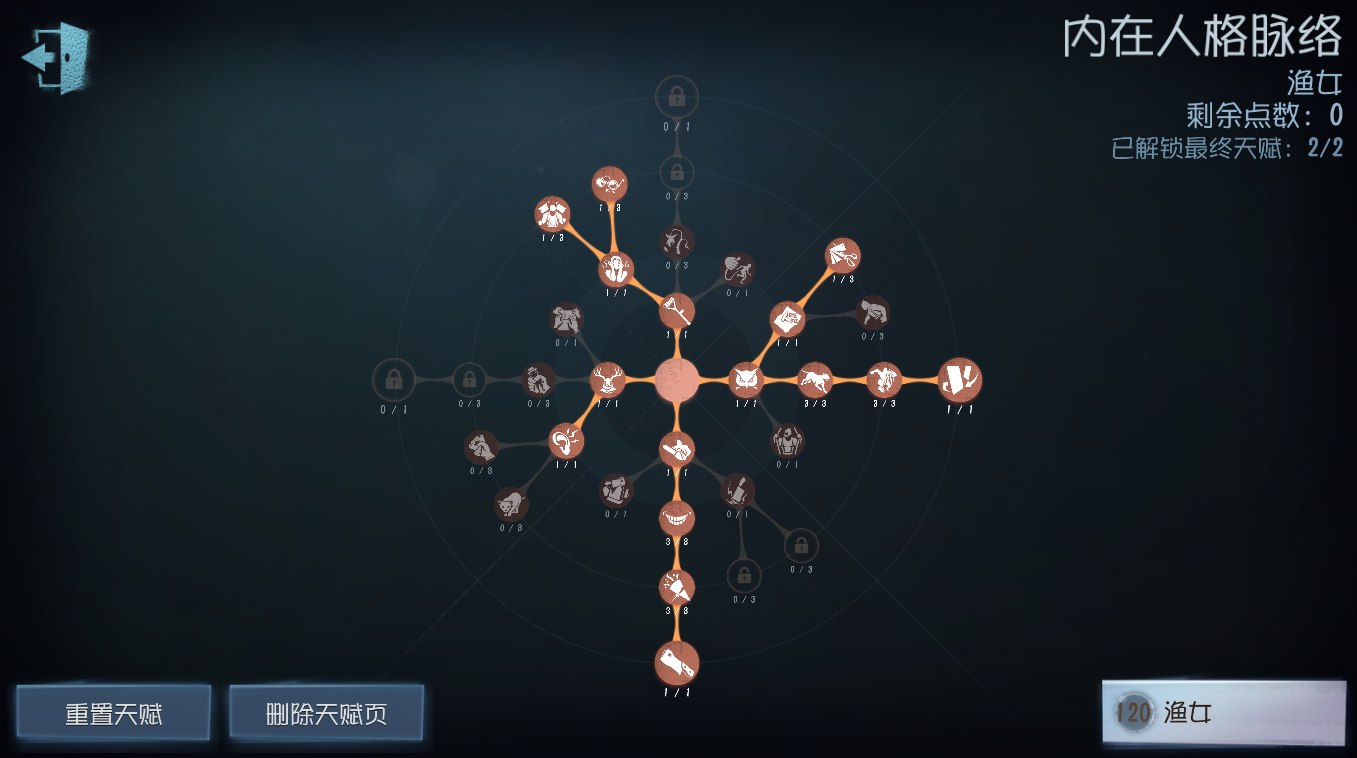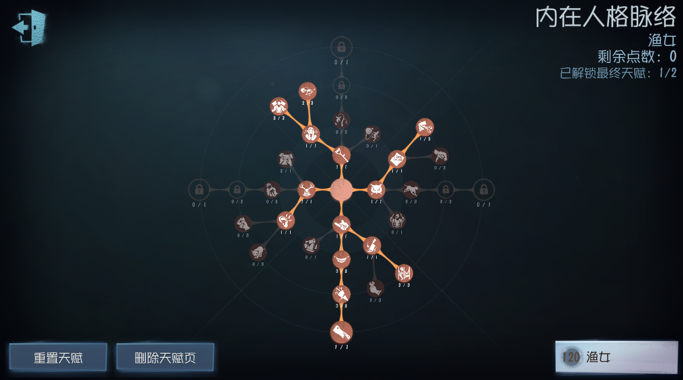 推荐辅助特质:【闪现】渔女开局可以利用【闪现】快速击倒求生者,掌握对局节奏。在守椅阶段,通过【通缉】判断救人位的方向可以更好的守椅。如果求生者放弃救援,也可以利用【通缉】找到下一个追击目标,用【惊波】拉近与求生者的距离或是干扰破译。【惊波】在后期的机动性很强,通过【底牌】更换辅助特质为【传送】,配合【挽留】在开门战可以打出极大优势。