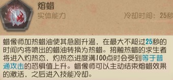 ② 热蜡对求生者造成的伤害不会触发“恐惧震慑”;