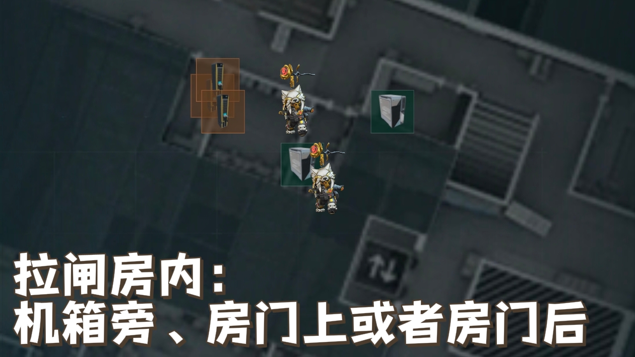 行政楼作为“兵家必争之地”,物资最丰富也是最容易被夺舍的地方,所以我们先来看行政楼有哪些一定要小心的点位——1号和2号点位均在拉闸房间内:我们推门进入拉闸房外面机箱房间时,就有可能有一位红狼在旁边的小服务器侧面趴着等着你;如果没有在这里遇到红狼,那么一定要小心打开的门,因为很有可能有红狼通过点位跳跃到了拉闸房的门上,也有一部分红狼会藏在门后。