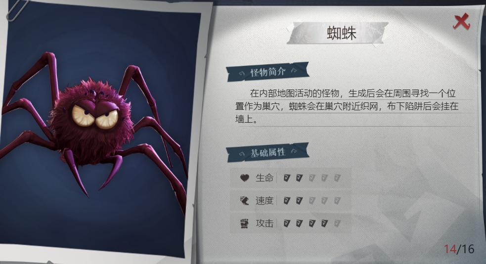 常出现在龙珠房间附近,蜘蛛出现时附近必有蛛网,玩家经过蛛网时会减速(用铲子去除蛛网时),会吸引蜘蛛