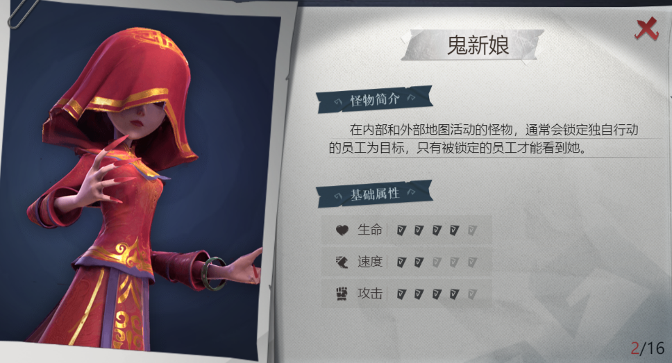 注:鬼新娘在击杀第一个锁定的玩家后,接下来会将永久进入攻击状态,追击玩家