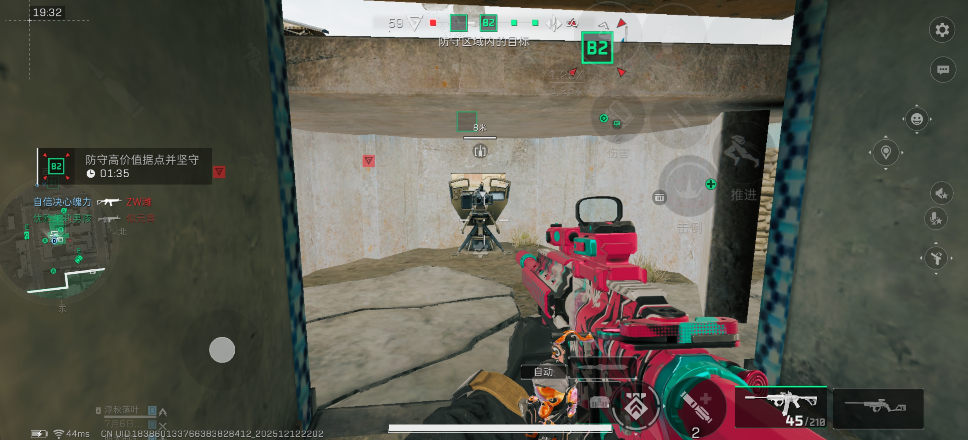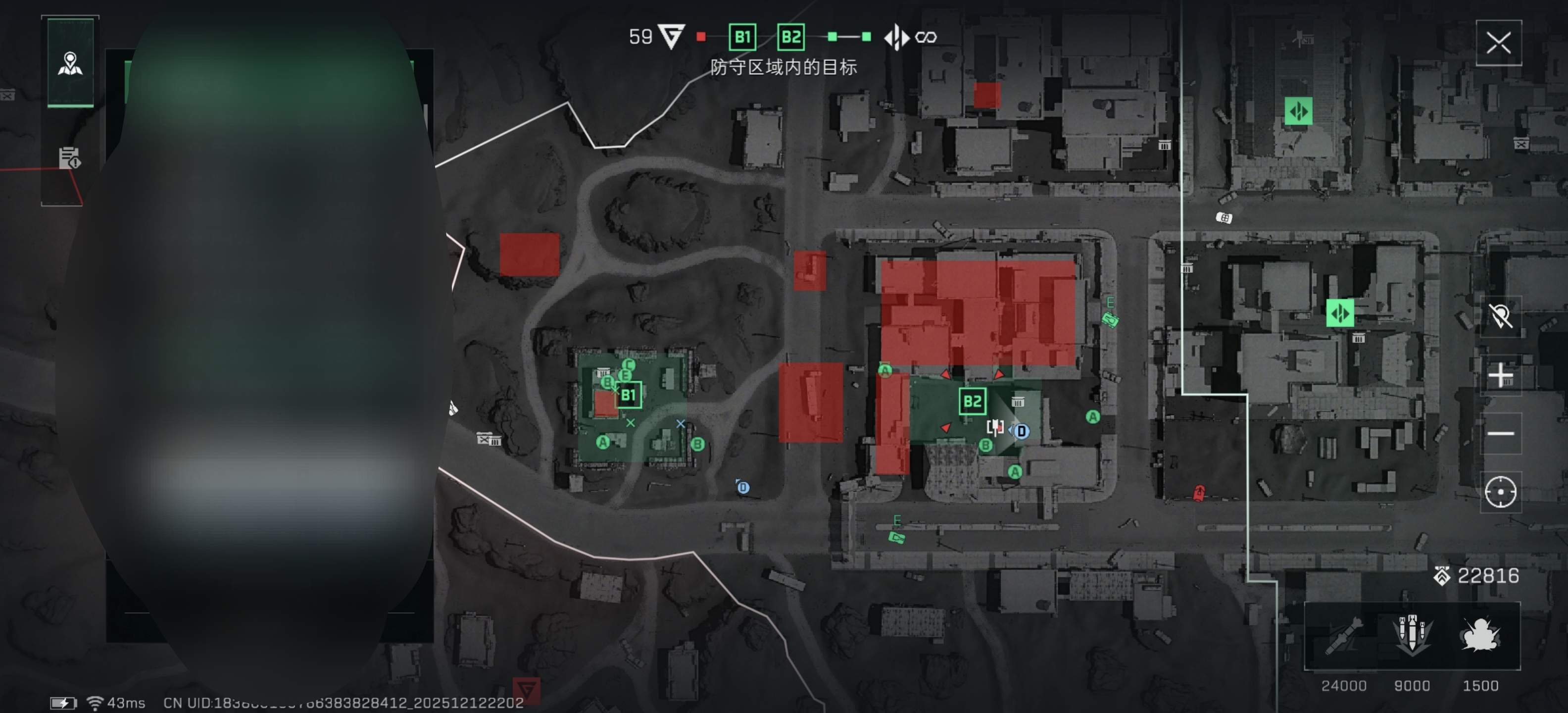 最后是地图思路以胜者为王的防守方烬区做例子。图中标注的红色区域都是可以进行架枪、争夺的一个点位,占领成功就可以使在守据点、争夺的情况下会更轻松,运用好个个干员不同的能力以及载具的协助进行高效的争夺、守护据点。同时也可以在B2点内的小房子建立固定机枪碉堡,提供大型掩体以及可观火力如下图: