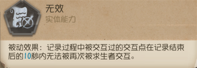 被记录的求生者停止交互后才会有“无效”效果的产生,期间交互行为可正常发生。