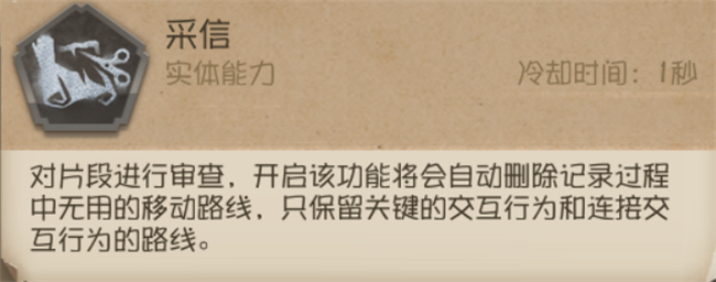该技能可以自主打开或关闭,一般情况下默认开启无需关闭。当开启后,所记录的宣读仅会保留交互片段(如记录员的出刀动作,求生者的翻版翻窗动作)