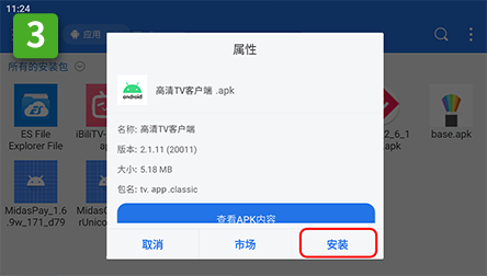 4、将U盘插入电视或电视盒子,通过电视盒子文件管理软件打开进行安装,或通过第三方文件管理软件(如ES文件浏览器或File Commander)打开安装。
