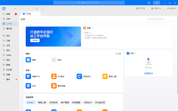 是阿里巴巴打造的企业级智能数字化办公协作平台。作为PC端核心生产力工具,它通过高效的沟通系统与深度的协同应用,打破空间限制,实现人、财、物、事的全面数字化链接。聚焦于消息即时响应、高效线上会议及全链路审批流。PC版特有的多窗并行操作、大屏文档共创及沉浸式视频会议,极大地提升了处理复杂任务的效率。凭借金融级安全防护、强大的OA集成系统以及灵活的低代码开发平台,它不仅是沟通工具,更是企业的数字化大脑。