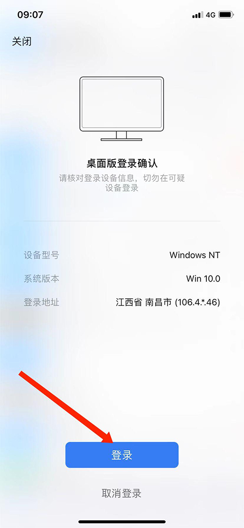 2、出现二维码,我们用手机钉钉进行扫码登录,在手机上选择【登录】选项,