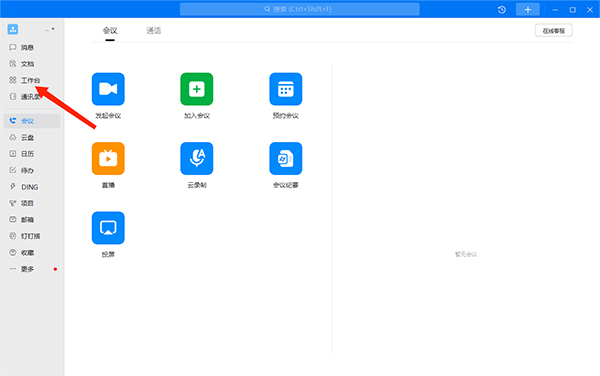 1、打开钉钉电脑软件软件,选择左边任务栏中的【工作台】选项,