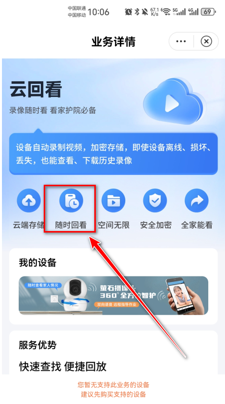 1.打开并登录小翼管家,点击云回看。
